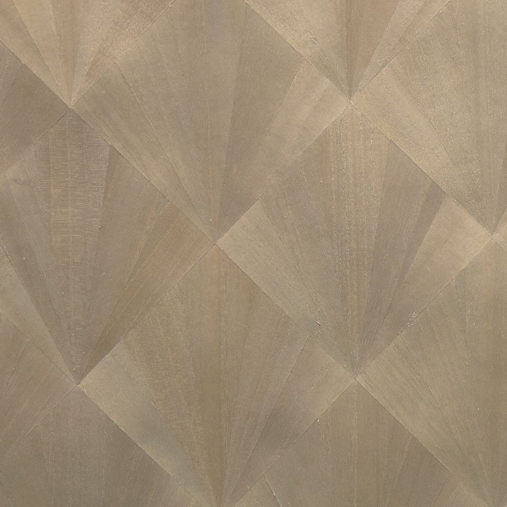 An intricately hand-inlaid wood veneer referencing Art Deco straw veneer. Ajiro Fanfare captures and reflects light beautifully. Micro‑thin wood on paper backing, Fanfare is flexible enough to wrap columns and turn corners. A cost-effective and environmentally sound alternative to traditional wood paneling.
