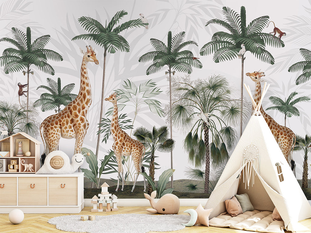 Each new design begins with a carefully considered concept—whether it’s a whimsical garden scene, a dramatic landscape, or a surreal menagerie. Once the theme and style are set, we assign the most fitting illustrator to hand-paint the design’s elements: from exotic animals captured in motion to delicate florals, vast skies, lush trees, and more. Every illustration is painted individually and then seamlessly layered into the full composition.