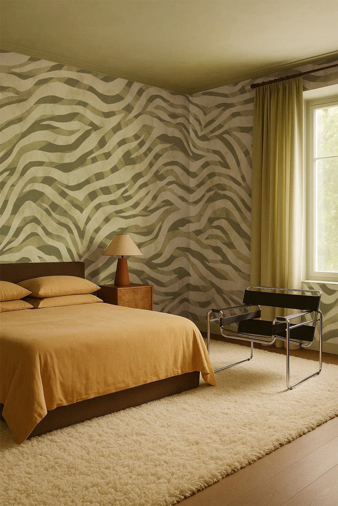 Eclectic Zebra in Green is a playful yet refined zebra wall mural perfect for bold interiors. The hand-drawn zebra stripes in green tones offer a more grounded, earthy take on the iconic pattern, ideal for those who love animal prints with a sophisticated twist. Use it to create a statement wall in your living room, hallway, or creative workspace. Eclectic Zebra Olive Green delivers character, movement, and a touch of the wild without overpowering the room.