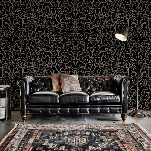 View Pattern DIG-171051-25-ps-2x9 Charlotte's Authentic Vintage 1910's Reproduction black Wallpaper | DW Bespoke Studios DW Bespoke Studios To Go