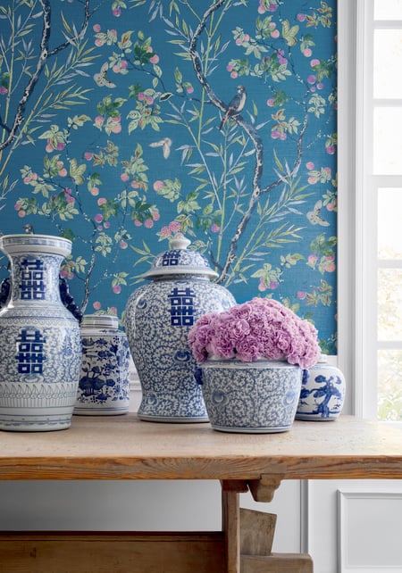 Claire Wallcovering - Navy | Thibaut Design