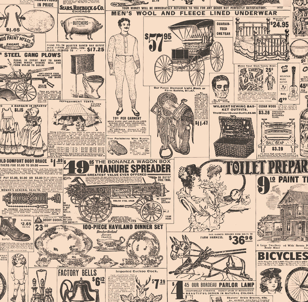 Rockport Vintage Newspaper Ad Print Wallpaper by DW Bespoke Studios To Go features a collage of classic newspaper ads with an antique charm. Perfect for adding nostalgic elegance to any space. #vintagewallcoverings #classicdesigns #homesdecor
