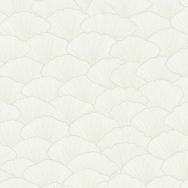 The Ginkgo tree is a living fossil dating back many millions of years; but this design of overlapping fan shaped leaves outlined in metallic ink is perfection in a contemporary setting. This is Luminous Ginkgo Wallpaper.