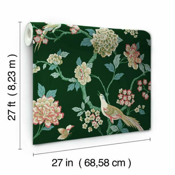 Pattern Fanciful’s bird and blossom trail pattern, touched by metallic, is a modern update to classic style. This Fanciful Wallpaper measures approximately 27 inches wide by 27 feet long, covering About 60.