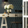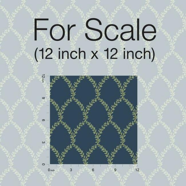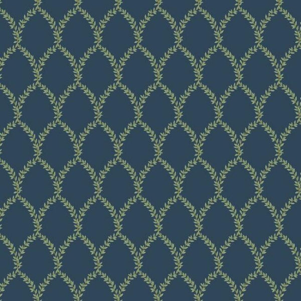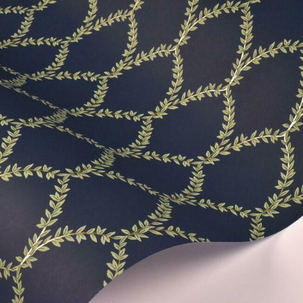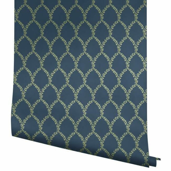 Leal Navy Laurel Botanical Beige Blue Wallpaper | Jeffrey Stevens