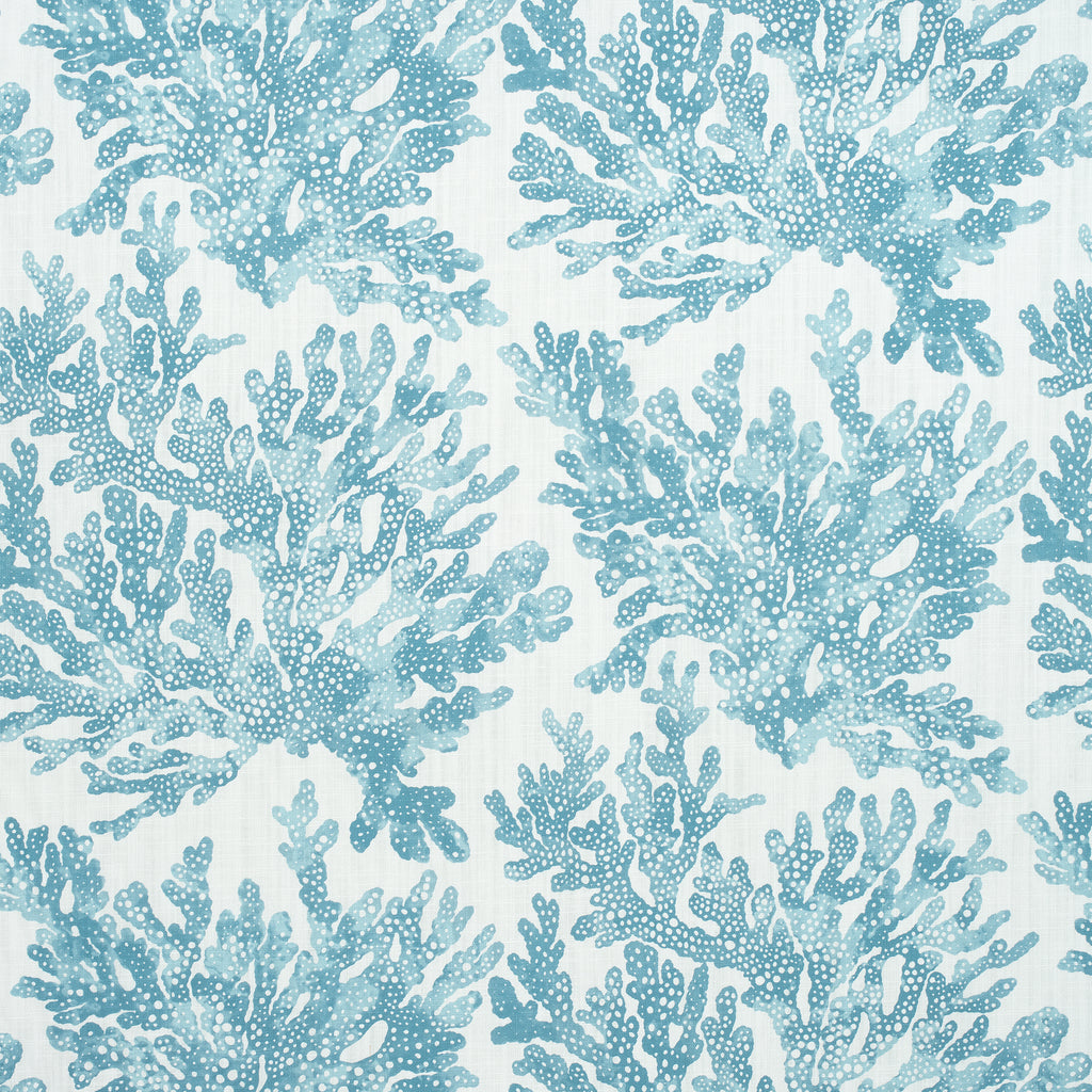 Marine Coral Spa Blue Fabric | Thibaut Wallpaper