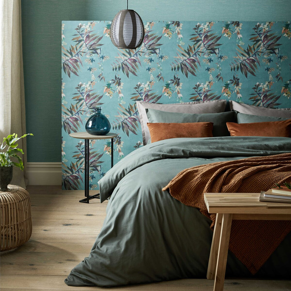 A stunning leaf design adorning walls with fading watercolour tones and delicate trailing orchids. Surround yourself with the beauty of nature and escape to a calming environment to relax and unwind.