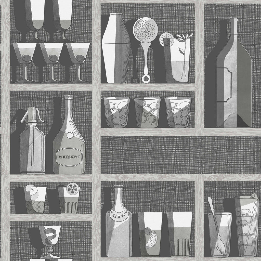 Cocktails - Soot/Snow Grey By Cole & Son | Cole & Son Fornasetti Senza Tempo | Wallcovering Print