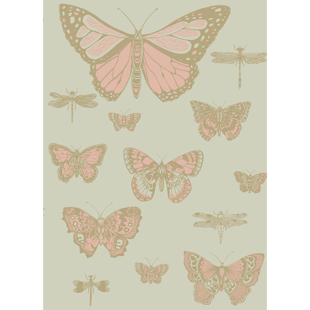 Butterflies & Dragonflies - Pink On Oliv By Cole & Son | Cole & Son Whimsical | Animal/Insects Wallcovering Print