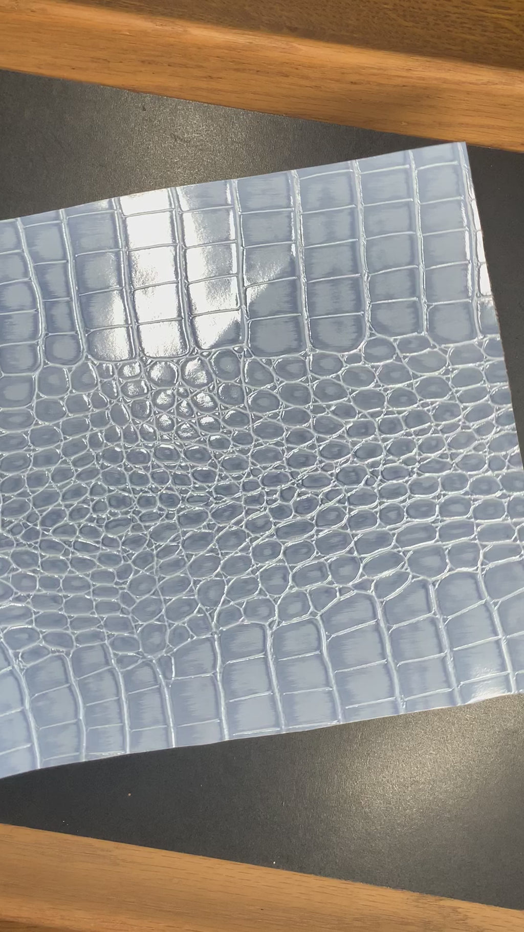 Le Embossed Croc Volta Wallpaper in Blue Bell features a sophisticated vegan leather finish with a subtle crocodile texture, adding depth and luxury to any space. Perfect for stylish, modern interiors. #luxurywallcoverings #veganleather #interiordecor