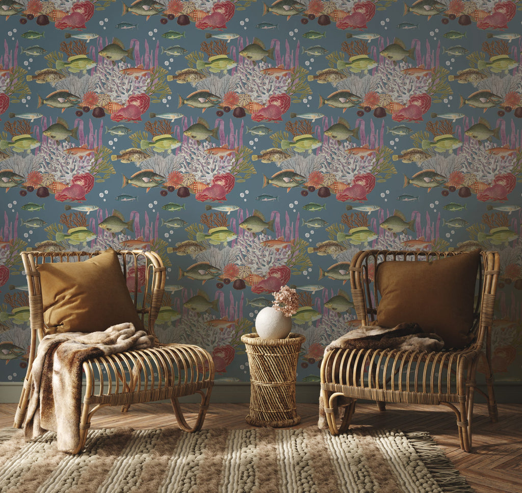 Samples and Purchasing available for Corales - Azuloscuro Multi By Gaston Y Daniela | Gaston Origen Dos |Animal/Insects Novelty Wallcovering Print at Designer Wallcoverings and Fabrics