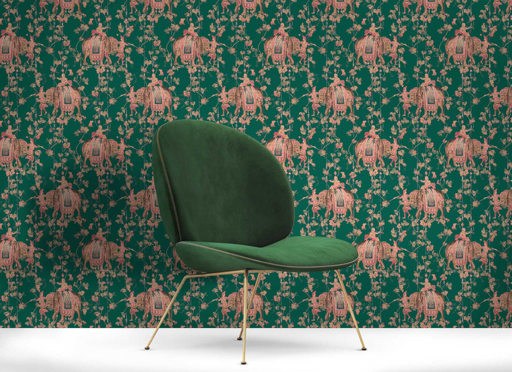 Samples and Purchasing available for Elefantes - Verde Esmeralda Emerald By Gaston Y Daniela | Gaston Serendipia |Botanical & Floral Animal/Insects Wallcovering Print at Designer Wallcoverings and Fabrics