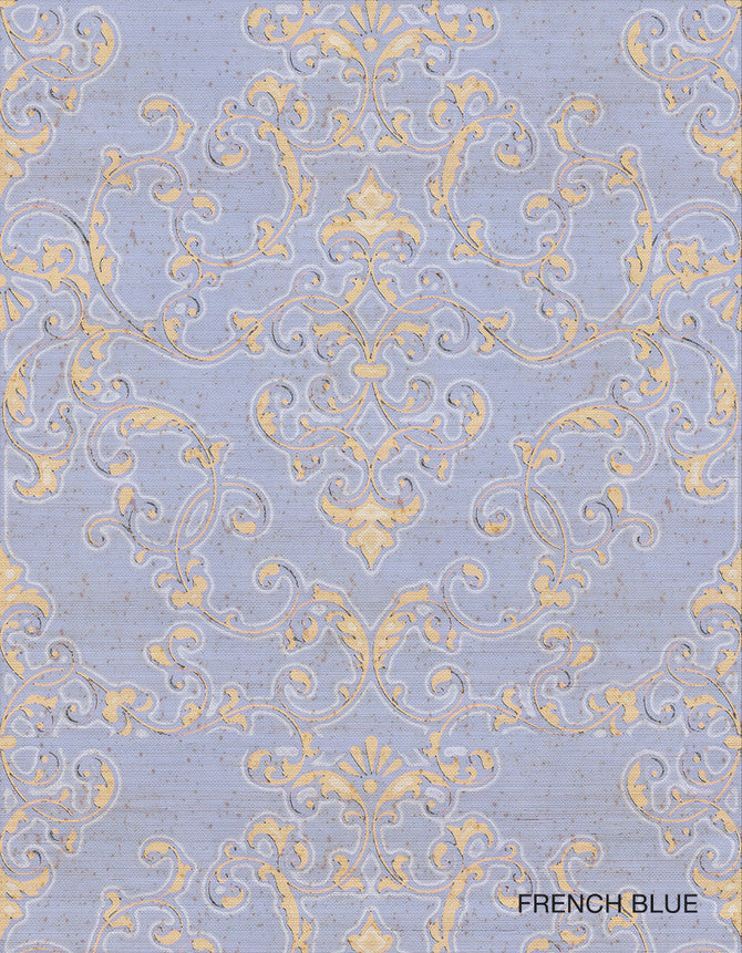 Damask 2 French Blue On Silver Sisal Wallpaper | Paul Montgomery