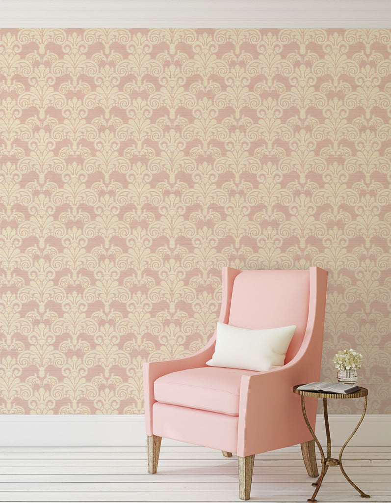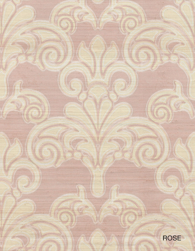 Elegant rose motifs bloom across a refined silver sisal background in this Damask 3 design by Paul Montgomery. A timeless blend of sophistication and texture. #luxurywalls #interiorsinspiration #decorlovers