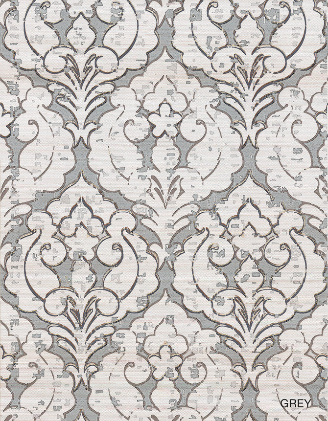 Damask 7 Grey On Silver Sisal Wallpaper | Paul Montgomery