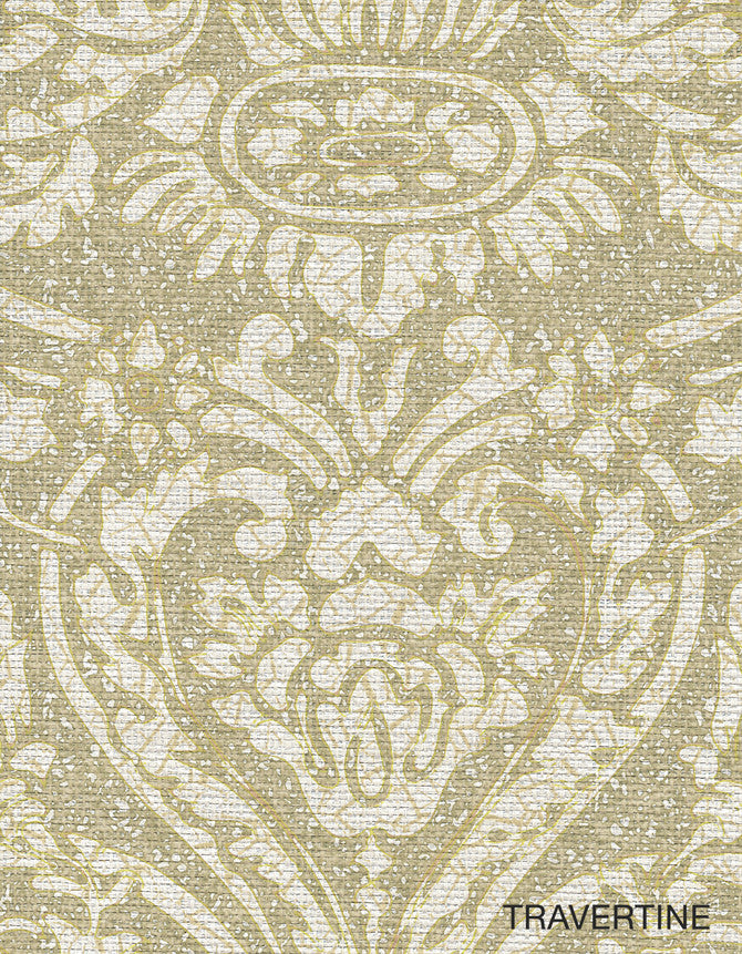 Grand Damask Travertine On Silver Paperweave Wallpaper | Paul Montgomery