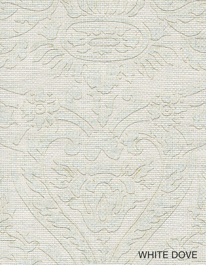 Grand Damask White Dove On Silver Paperweave Wallpaper | Paul Montgomery