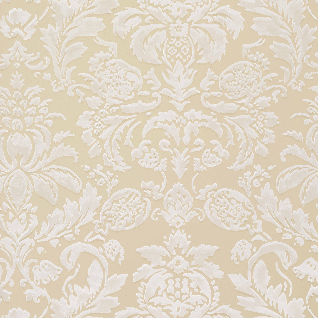 Lyndon Damask White On Beige Wallpaper | Thibaut Wallpaper