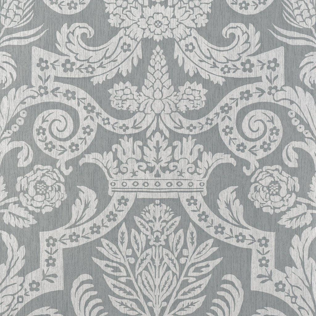 Harvard Damask Silver Grey Wallpaper | Thibaut Wallpaper