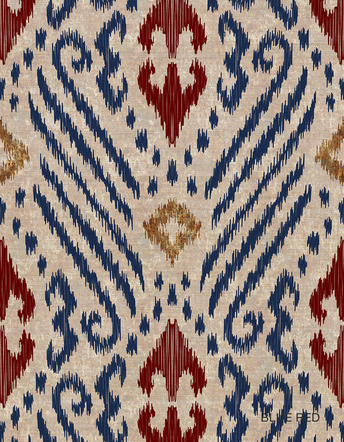 Ikat 6 Blue Red Wallpaper | Paul Montgomery
