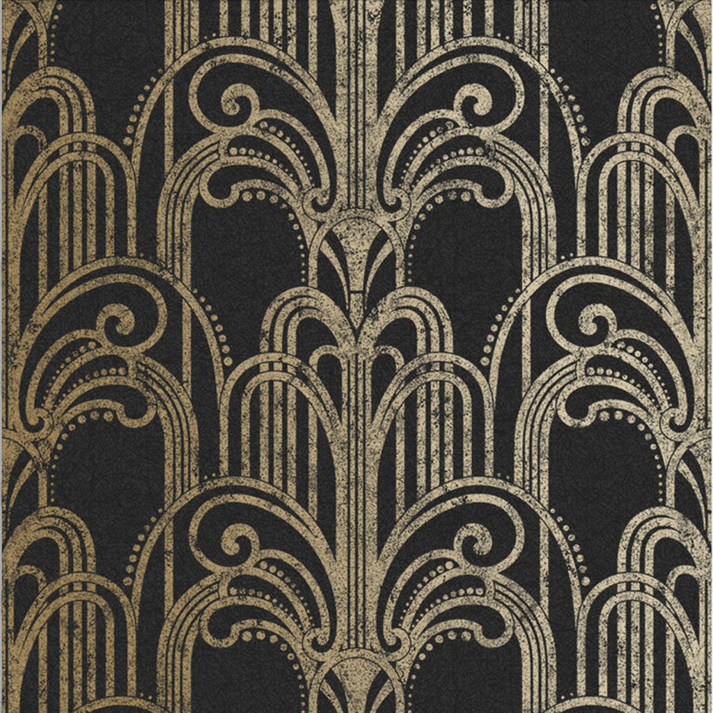 The Black and Gold Art Deco wallpaper exudes opulence and sophistication. Created in the Graham and Brown studio, this wallpaper is inspired by the flowing champagne fountains of a legendary Gatsby party. Gold metallic silhouettes are highlighted with a bold black textured background, creating a dramatic and decadent design. Quick & easy 'Paste The Wall' application (no decorating table or pre-cutting required). Non-woven wallpaper, won't shrink or expand overtime.Designer Wallcoverings and Fabrics is a leading authorized dealer of Art Deco Black and Gold Wallpaper