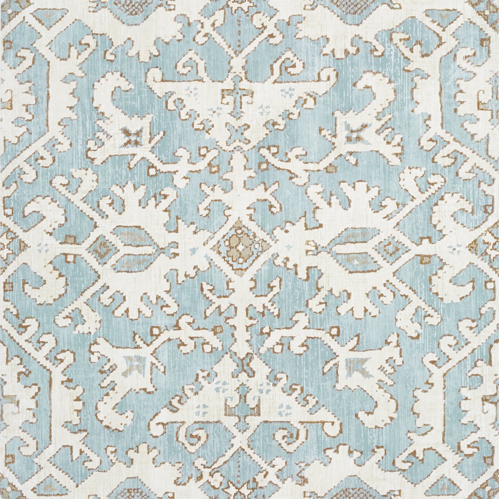 Pontorma Robin's Egg Blue and Cream wallpaper by Thibaut features an elegant, intricate pattern with soft, soothing hues evoking timeless sophistication and calm. Perfect for refined interiors seeking a subtle yet luxurious statement. #luxurywallcoverings #elegantdesign #interiorstyle