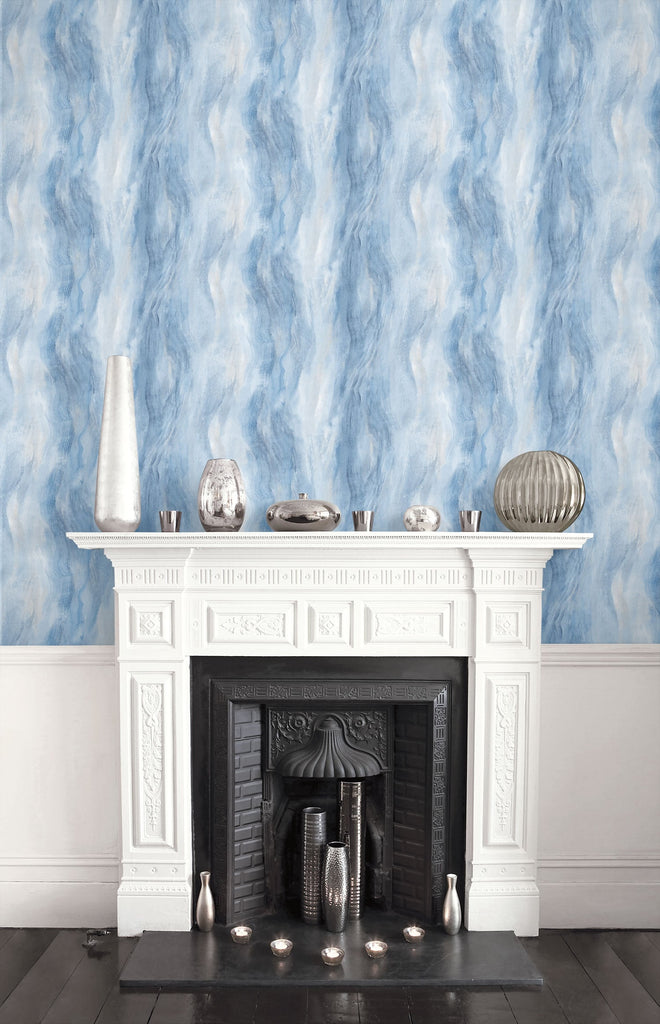 Soft smoky textures and a serene blue lake hue bring calming depth to this vinyl embossed design by Malibu Walls Type 2 Vinyls. #luxurywalls #interiorspace #vinylwallcovering