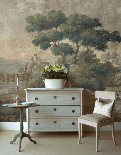 These picturesque Chinoiseries and decorative murals are fine reproductions of the hand-painted originals, gathered from the most talented and exclusive studios of Asia. Scenes on these mural panels include wonderful gardens and natural environments populated with lovely birds, butterflies, and insects. These selections offer a variety of color schemes to meet most interior needs.