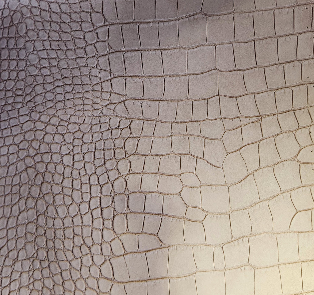 Sueded Matte Croc. Introducing the LE Embossed Croc Vuto, Viva, Vero, Vista collection from DesignerWallCoverings.com – a premium range of embossed crocodile-patterned wallcoverings and upholstery fabrics designed to transform your interiors with a unique, textured look. Perfect for both walls and decorative upholstery, this luxury material blends timeless elegance with contemporary style, offering endless possibilities for high-end residential and commercial projects.
