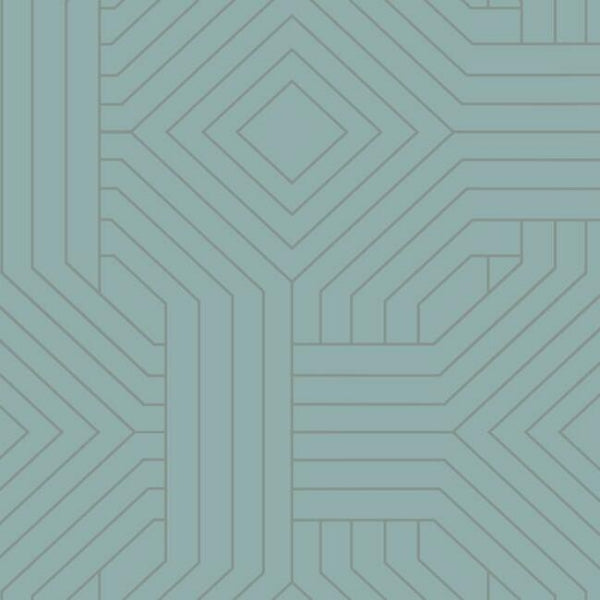 A network of gleaming metallic lines running vertically, diagonally, and horizontally forms a maze on a field of contrasting matte paper. This is Diverging Diamonds Wallpaper.