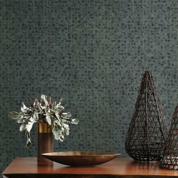 Levron Dark Green Leather Lux Textured Wallpaper | Jeffrey Stevens