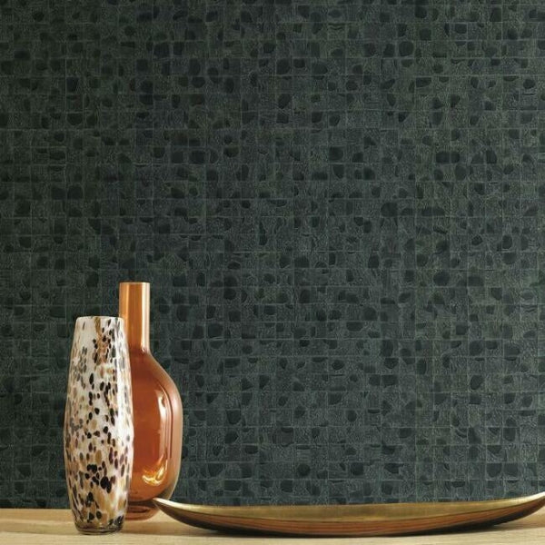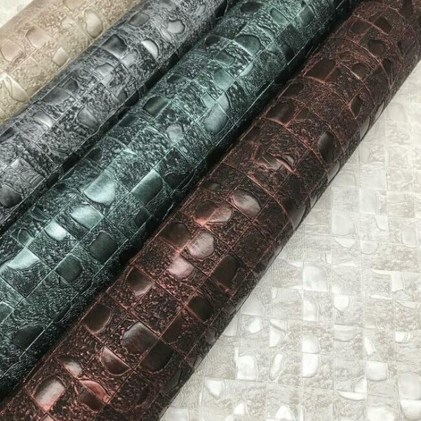 Pattern Leather Luxe is a geometric grid, overprinted with transparent, textural lacquer, for the effect of color beneath clear, shimmering waters. This Leather Lux Wallpaper measures approximately 20.