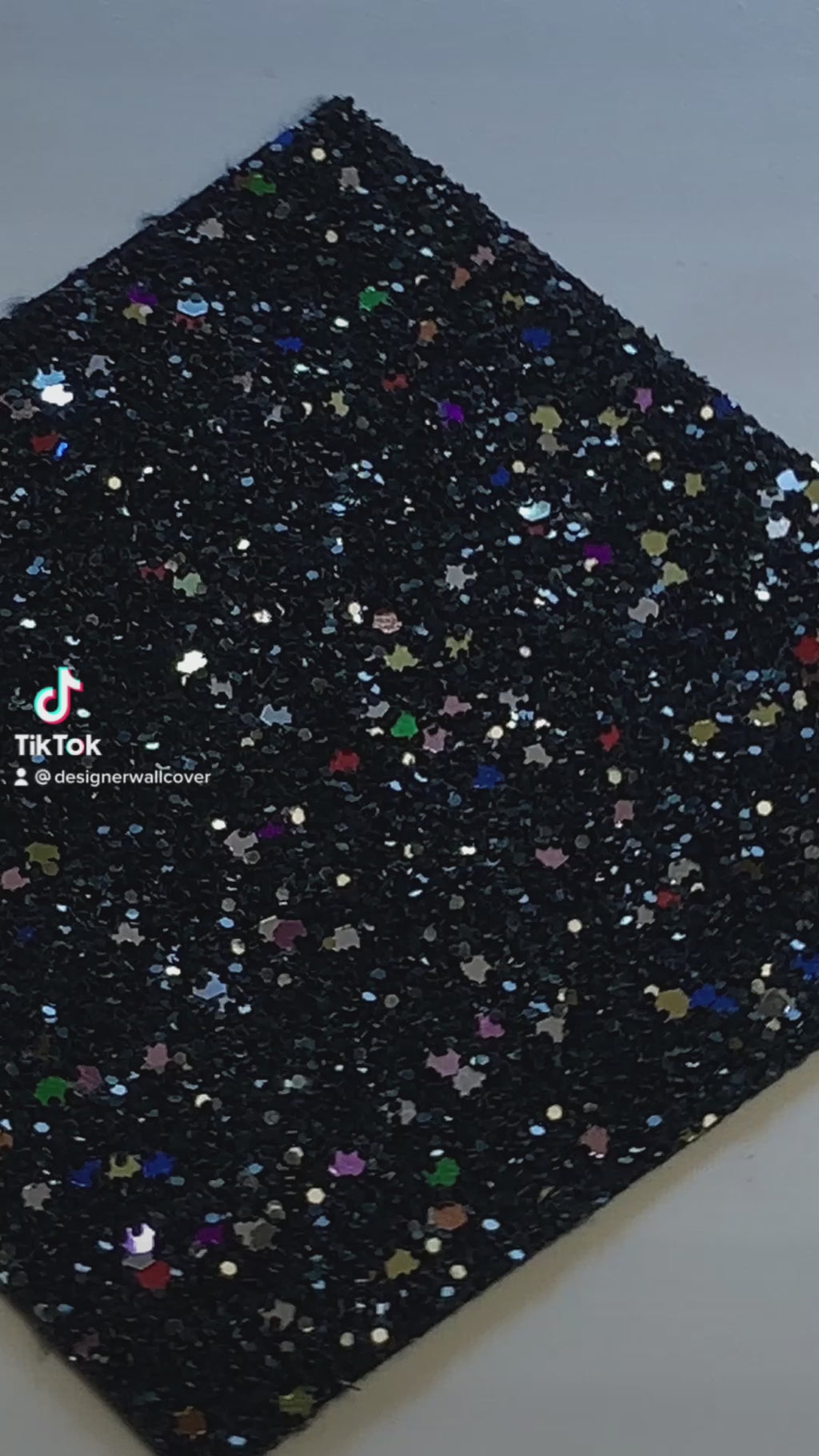 A dazzling black wallpaper adorned with multi-colored sequins shimmering like Hollywood glamour lights. Perfect to elevate any space with sparkle and sophistication. #luxurydecor #elegantwalls #glitterwallcoverings