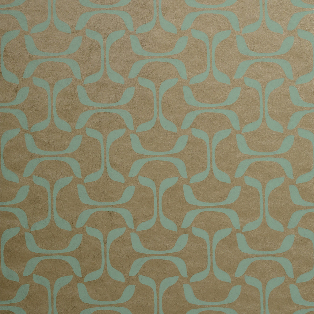 Saroka Aqua On Metallic Pewter Wallpaper | Thibaut Wallpaper
