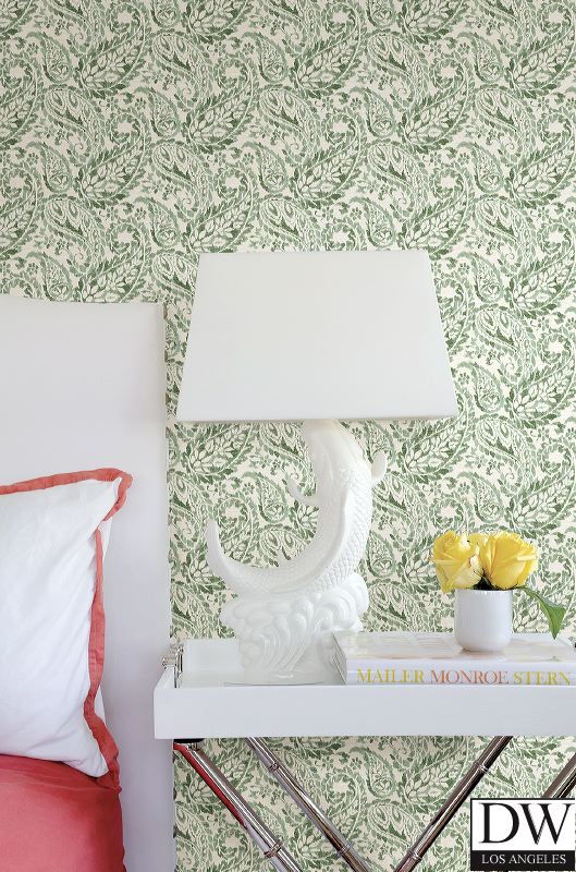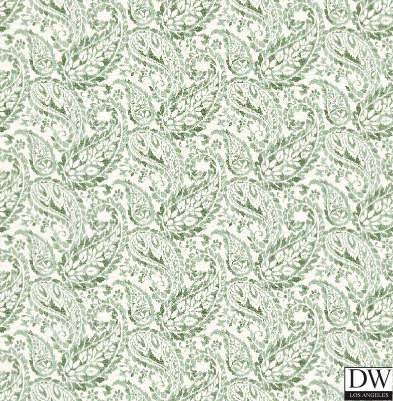 The Adrian Green Paisley Wallpaper by Jeffrey Stevens features an intricate paisley motif with elegant swirls in soothing green tones. Its timeless design adds a sophisticated touch to any space. #luxuryinteriors #homesdesign #wallfashion