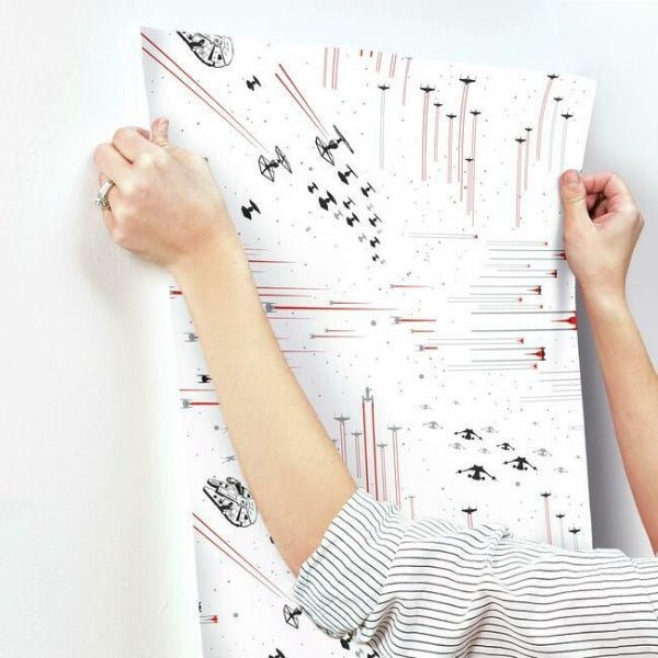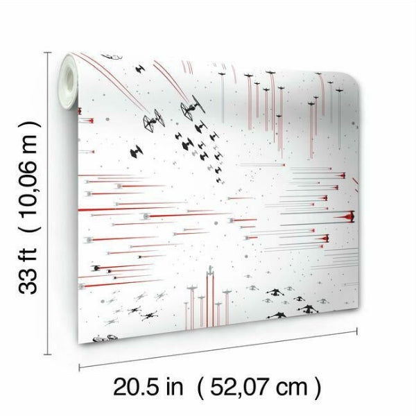 This colorful pattern is sure to add high impact to your kids space. This Star Wars: Galactic Battles Wallpaper measures approximately 20.