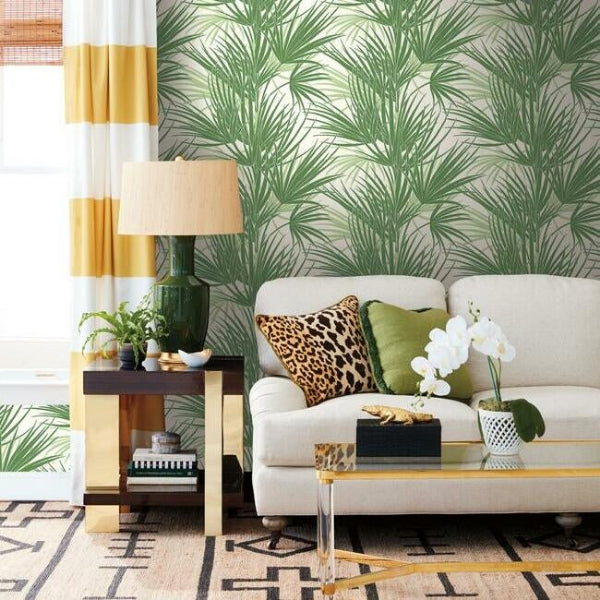 Priscila Green Palmetto Bohemian Green Red Wallpaper | Jeffrey Stevens