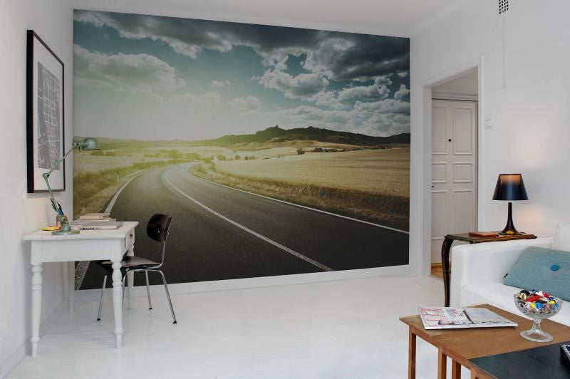 An open road stretches toward the horizon in this serene mural. "Road Wallpaper | Rebel Walls" evokes freedom and depth. #modernwallart #homedecorstyle #statementwalls