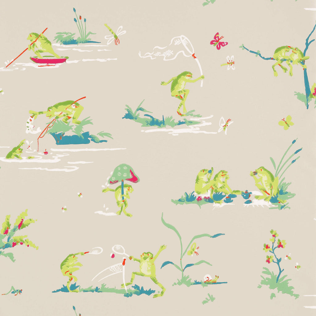 Resort Frogs Flax Wallpaper | Thibaut Wallpaper