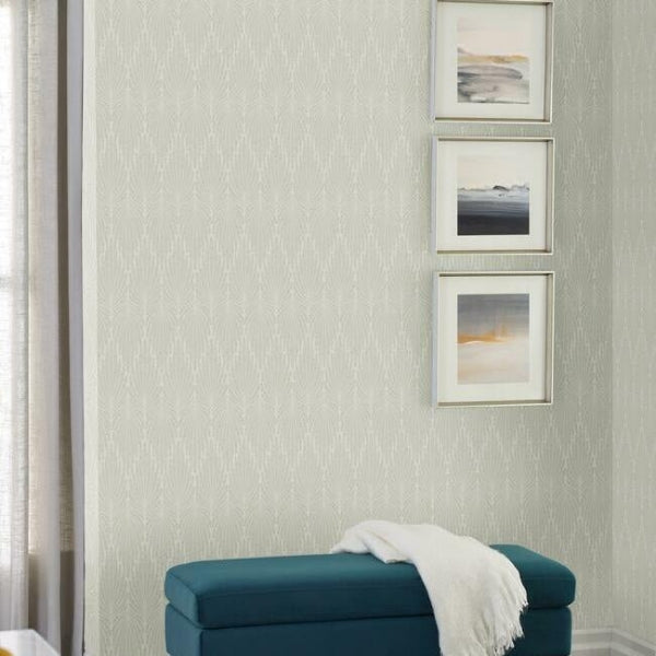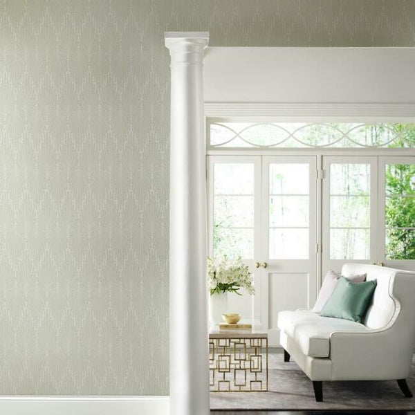 A touch of fantasy for the sophisticate, this pattern features a feathery motif, pointing upward or down, and incorporates metallic dots teathered with strings. This is Café Society Wallpaper.