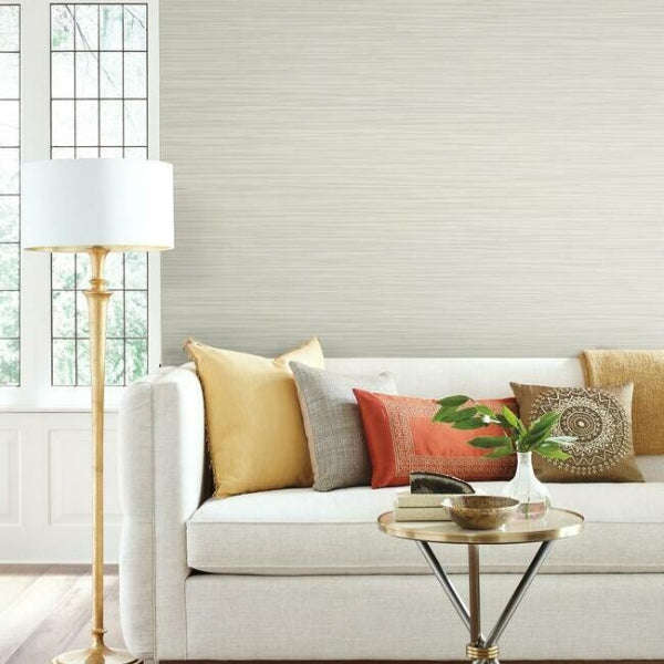 An urbane artistic portfolio of polished elegance and contemporary verve designed with the signature stylings of Stacy Garcia for Wallcoverings..A delicacy of color and design, textured horizontal stripes lay over a tonal background of filmy pastels to capture the essence of breaking dawn.