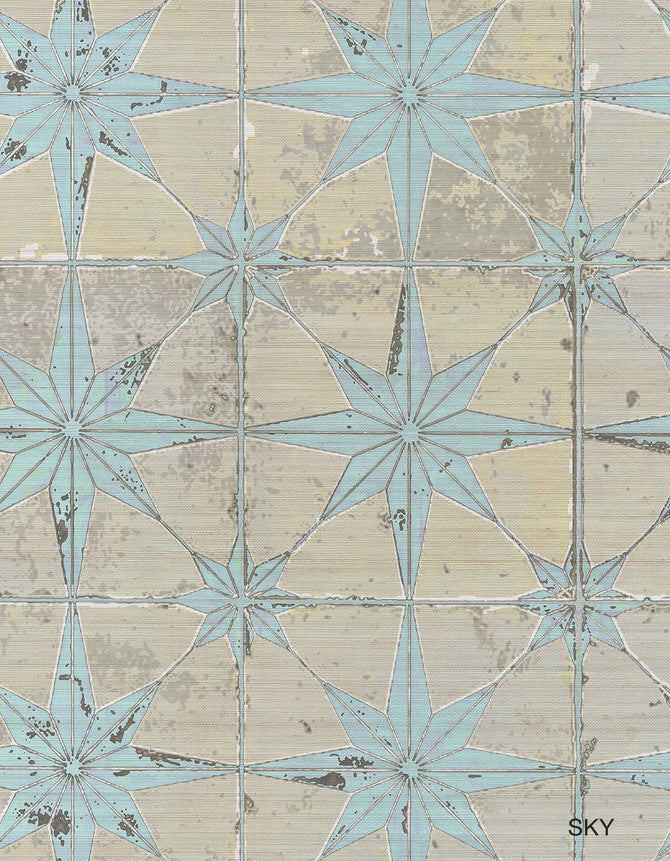 Morrocan tiles become stars in a strong, geometric pattern with a slightly offset, handcrafted casualness. Variations within each section play well with the Silver Sisal. This pattern is crafted by combining hand-painted finishing with geometric design. Sold in standard lengths from 1 to 4 yards. Pattern is 35" wide after trim by installer.