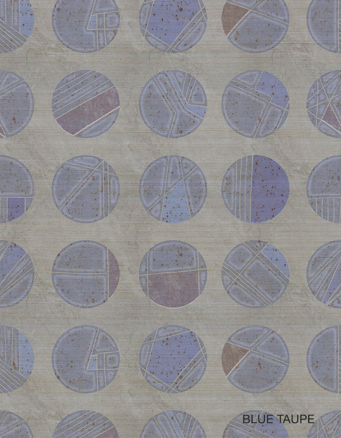 A modern composition of transected circles becomes a sophisticated design with unusual effects and textural appeal on the weave of silver sisal. This pattern is crafted by combining hand-painted finishing with geometric design. Sold in standard lengths from 1 to 4 yards. Pattern is 35" wide after trim by installer.