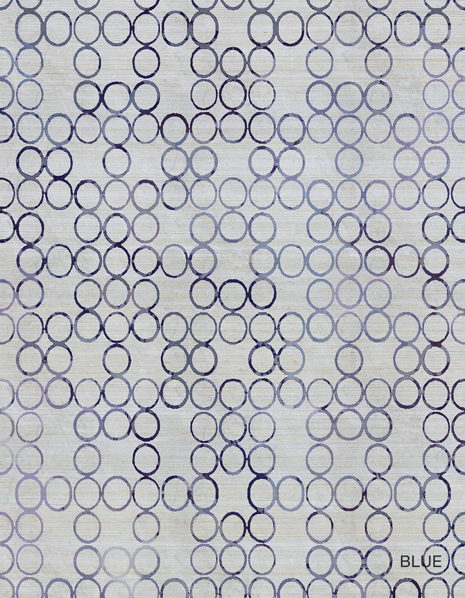 Ovals Blue On Silver Sisal Wallpaper | Paul Montgomery