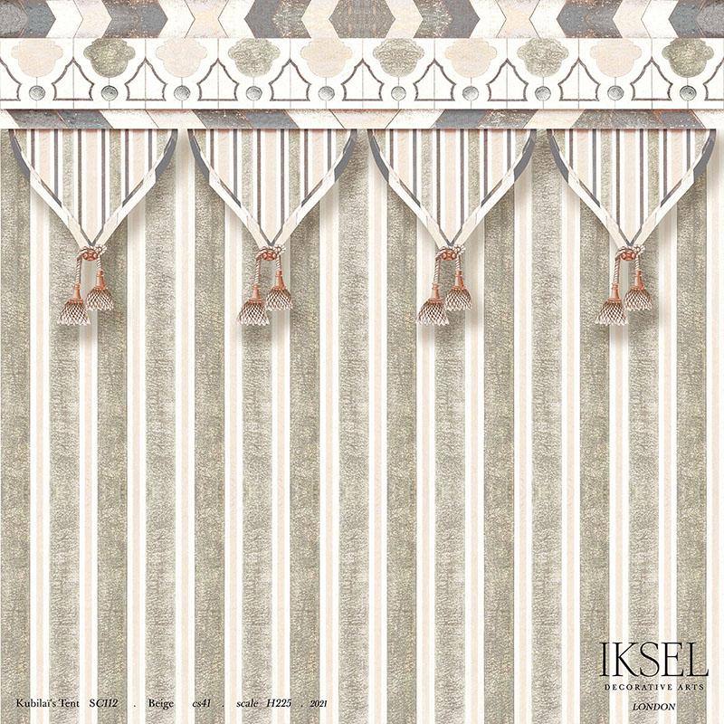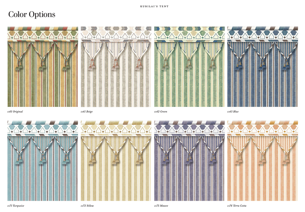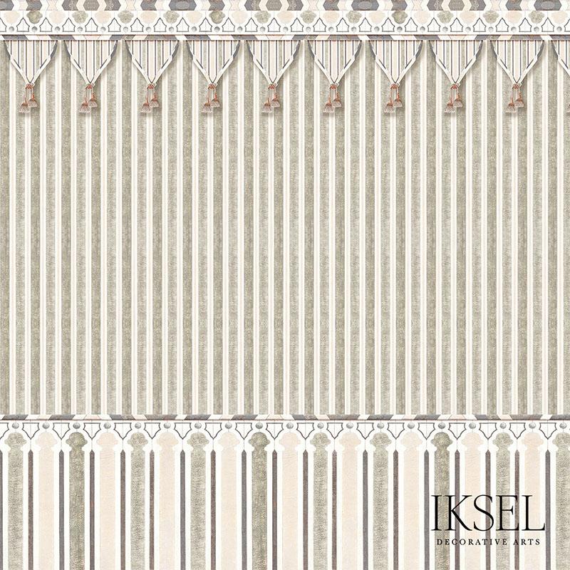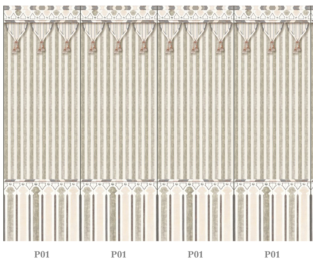 This design is in fact taken from an Abbasid wainscoting. Dimonah made it into an exotic tent which transforms a room into a chic camping fantasy. After receiving your sample, call us with your height requirements . Panels are sold in heights of 88 3/5", 100 3/8", 108 2/8", 118 1/8", 128" tall on paper or vinyl