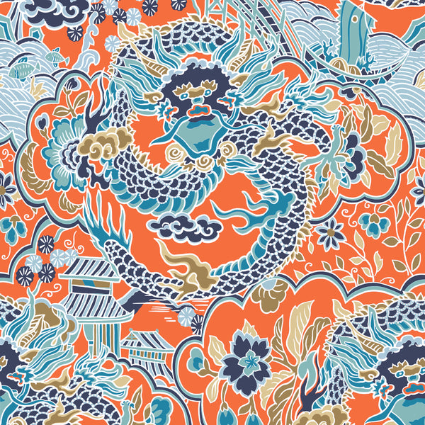 Thibaut introduces the Imperial Garden collection of coordinating wallpaper, embroidery, print and woven fabrics. Inspired by the Far East, many patterns come from antique documents. This collection takes traditional to the next level and includes a cut velvet tiger pattern, a large scale damask, graphic ikats, and grand chinoiserie dragons and florals.