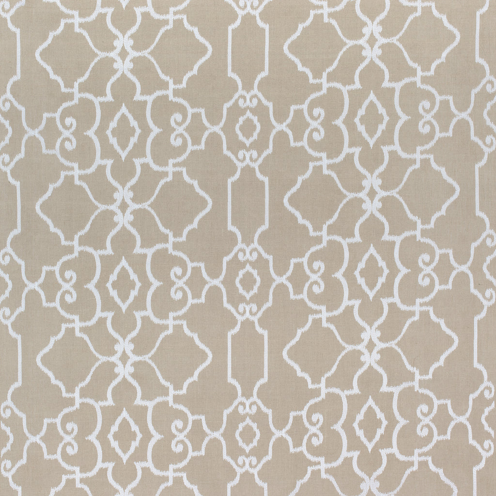 Ogden Embroidery White On Natural Woven Fabrics | Thibaut Wallpaper