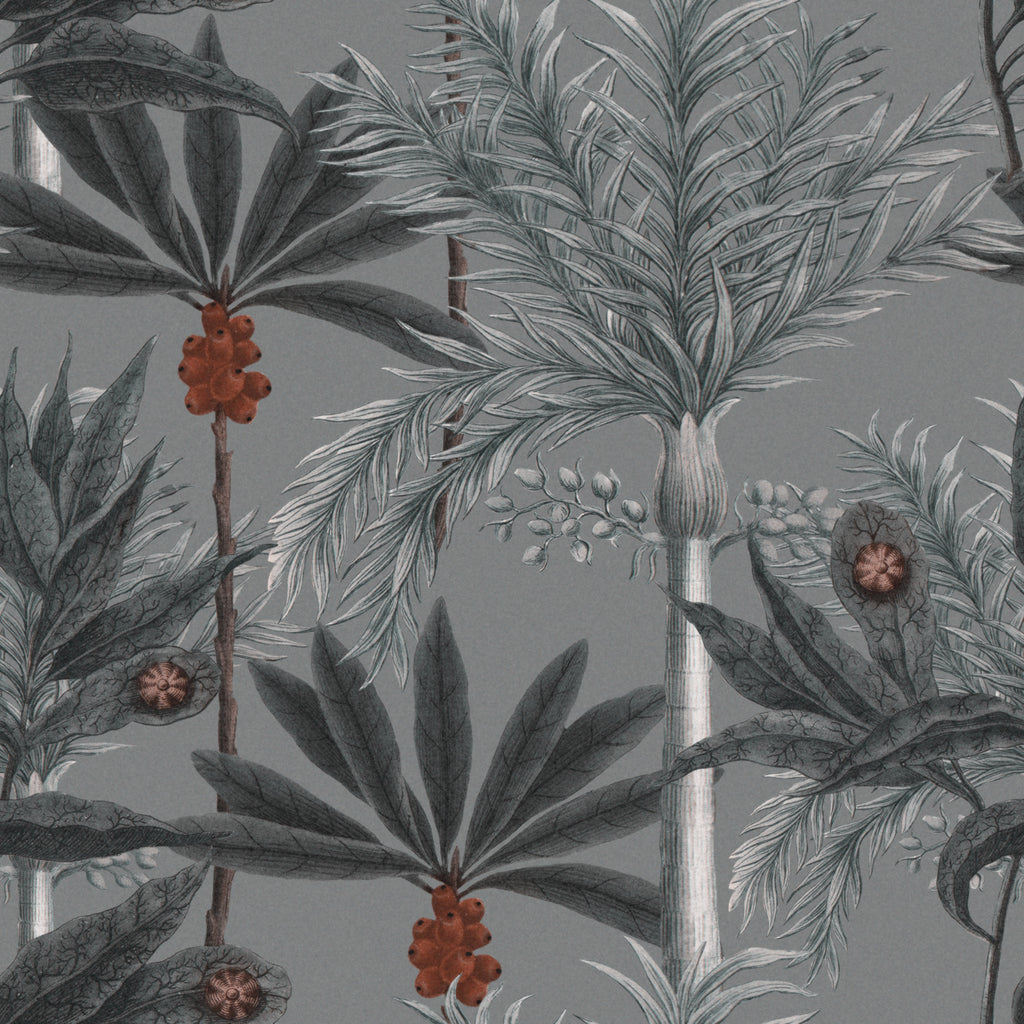 A delicate and soft design depicting some specific palm trees illustrations that can be found in the tropical rainforest of Madagascar. Available in two colour versions: tea green and grey. All Mind The Gap wallpapers are made on new generation non-woven substrate. Printed with eco-friendly inks, Mind The Gap wallpaper are easy to install on any wall type. When hanging the wallpaper, apply the ready-mix adhesive paste on the wall and hang the strips one by one by butting the edges together. The adhesive allows for a while moving the wallpaper strips, so that the wallpaper pattern continues correctly from one strip to another. All our wallpapers are tested and certified for fire rating according to the international legislation. More information and official reports regarding the fire rating are available on demand.