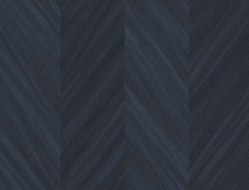Sophisticated chevron wood texture in Baikal Blue brings depth and elegance to any space. A refined vinyl finish. #luxurywalls #chevrondesign #malibuwalls