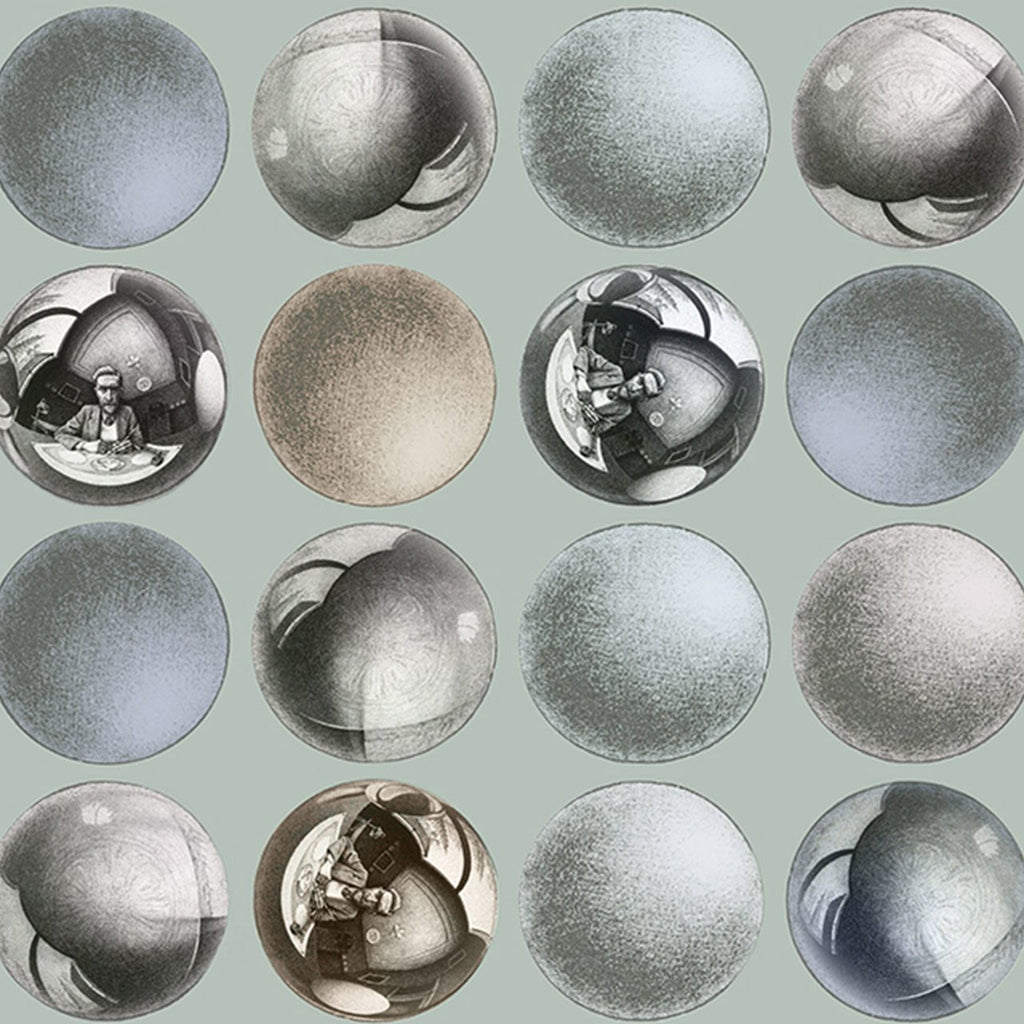Sphere Aqua Jade Wallpaper by MC Escher features intricate, hypnotic spheres with a jade aqua palette creating a mesmerizing, geometric illusion. Perfect for elevating sophisticated interiors with artistic depth. #homeinspo #luxewallcoverings #creativeinteriors